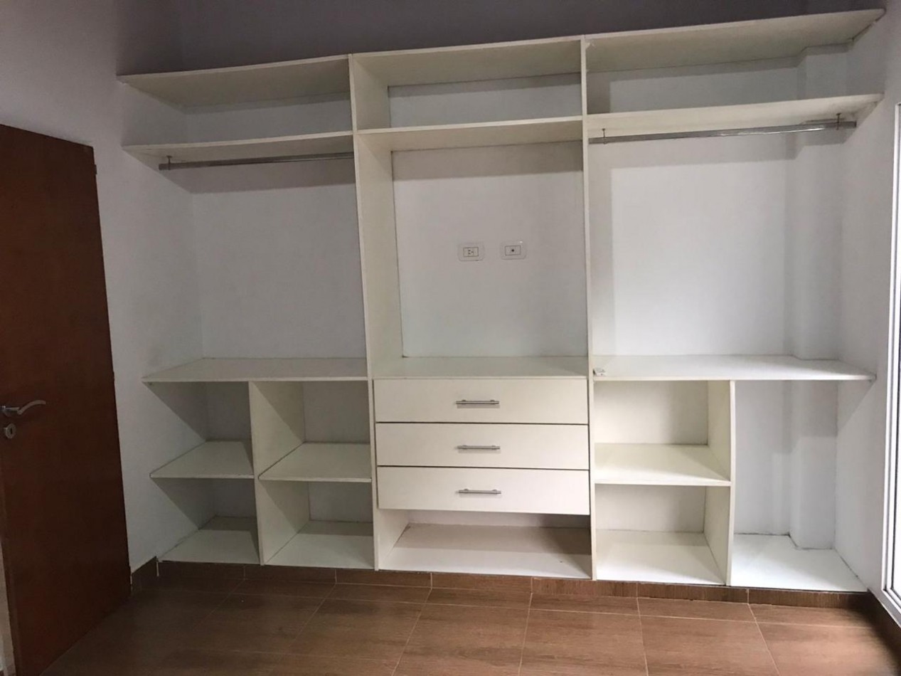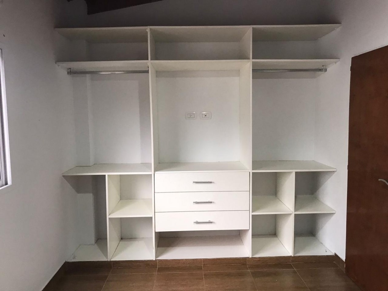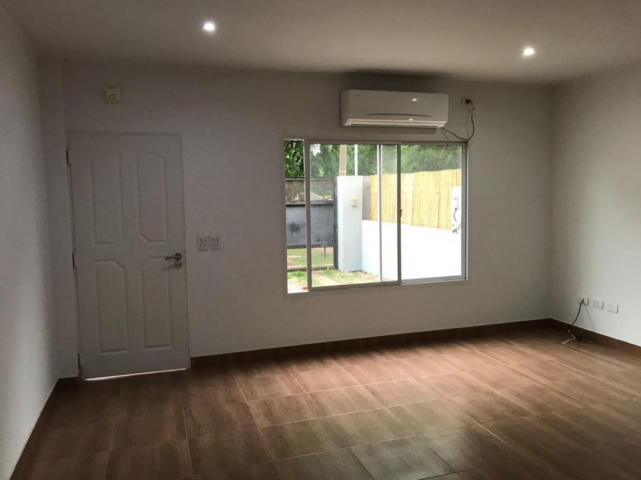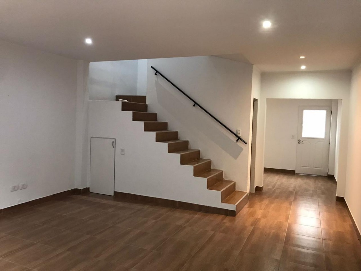Duplex tres ambientes . Planta baja living comedor, toillet de recepcion, cocina y jardin.