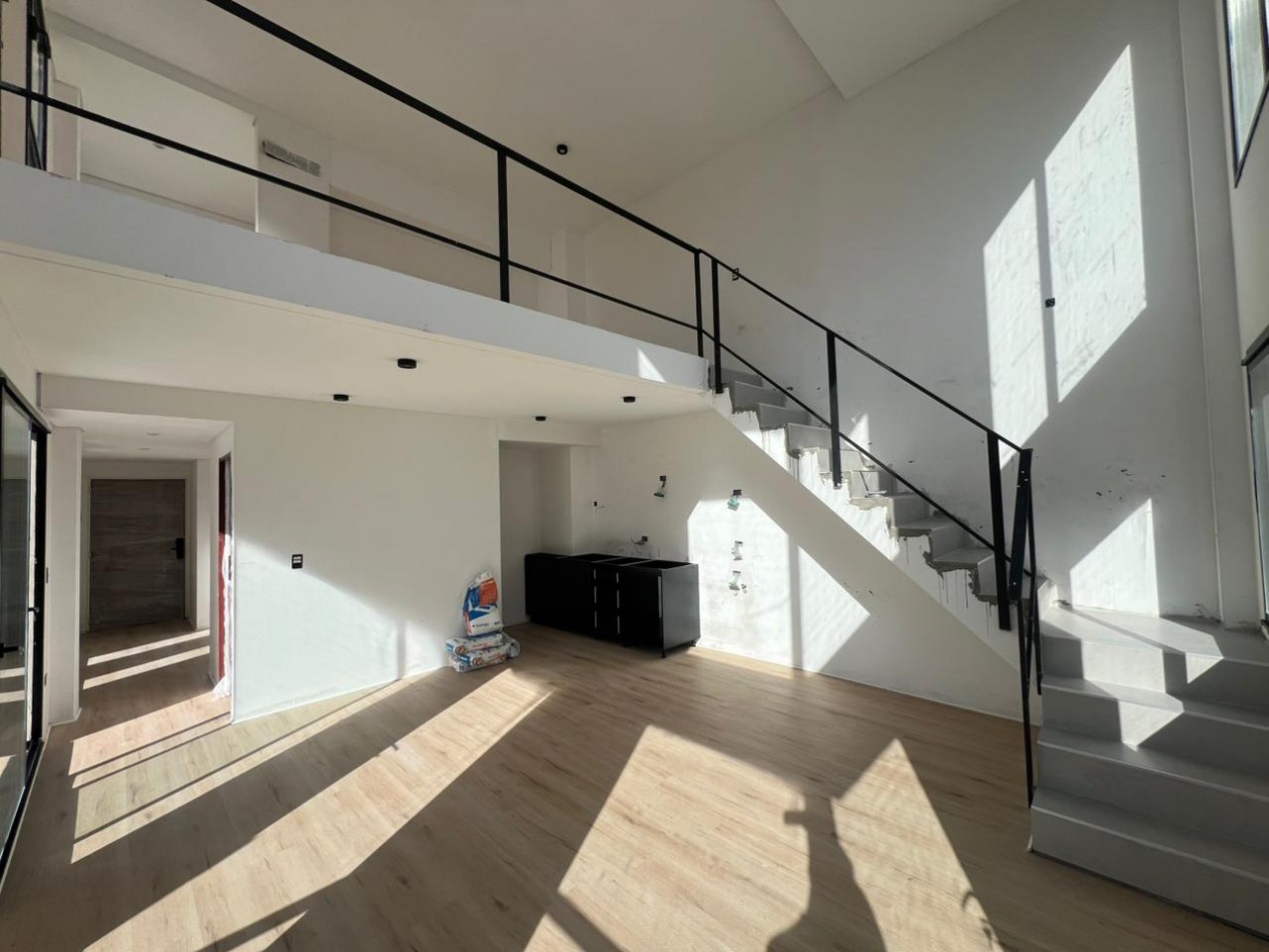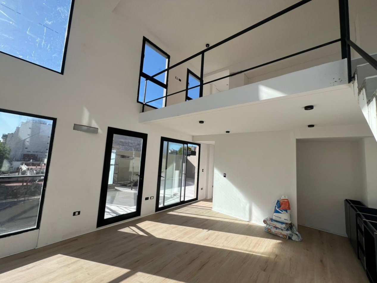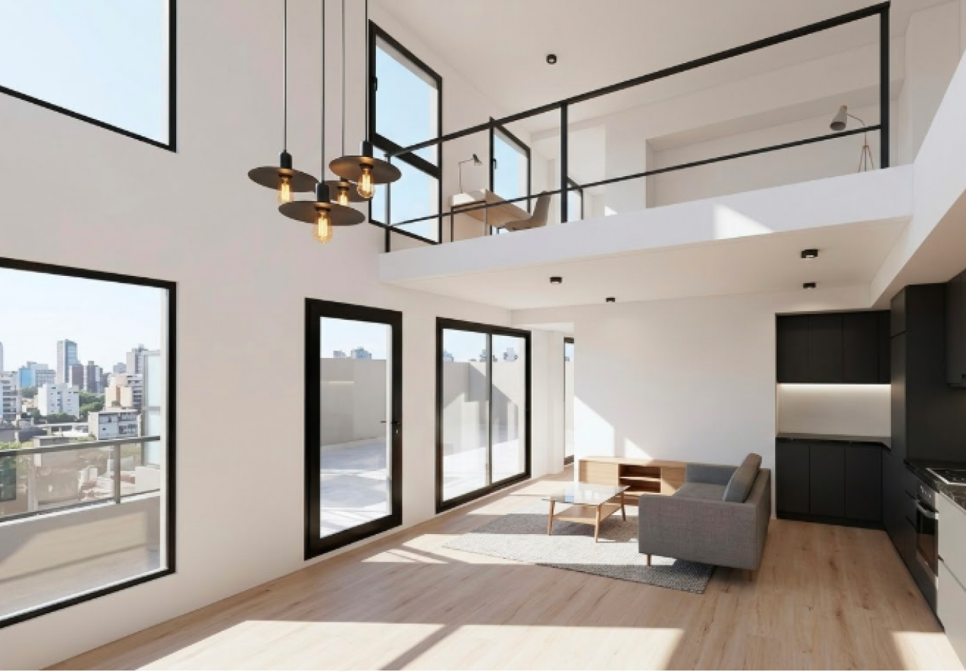 La unidad cuenta con hall de recepción, toilette de visitas, amplio ambiente con doble altura y salida directa a la terraza, cocina integrada y dormitorio en suite con baño completo.