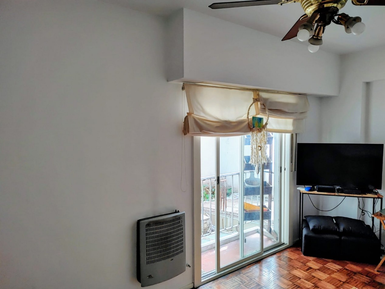 Living comedor con salida a balcón francés orientado a pulmón de aire y luz.