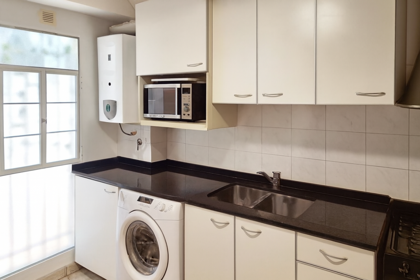 Cocina: amplia, ventilada, con gran espacio de guardado, calefón eléctrico y cocina nuevos, ventana al patio.