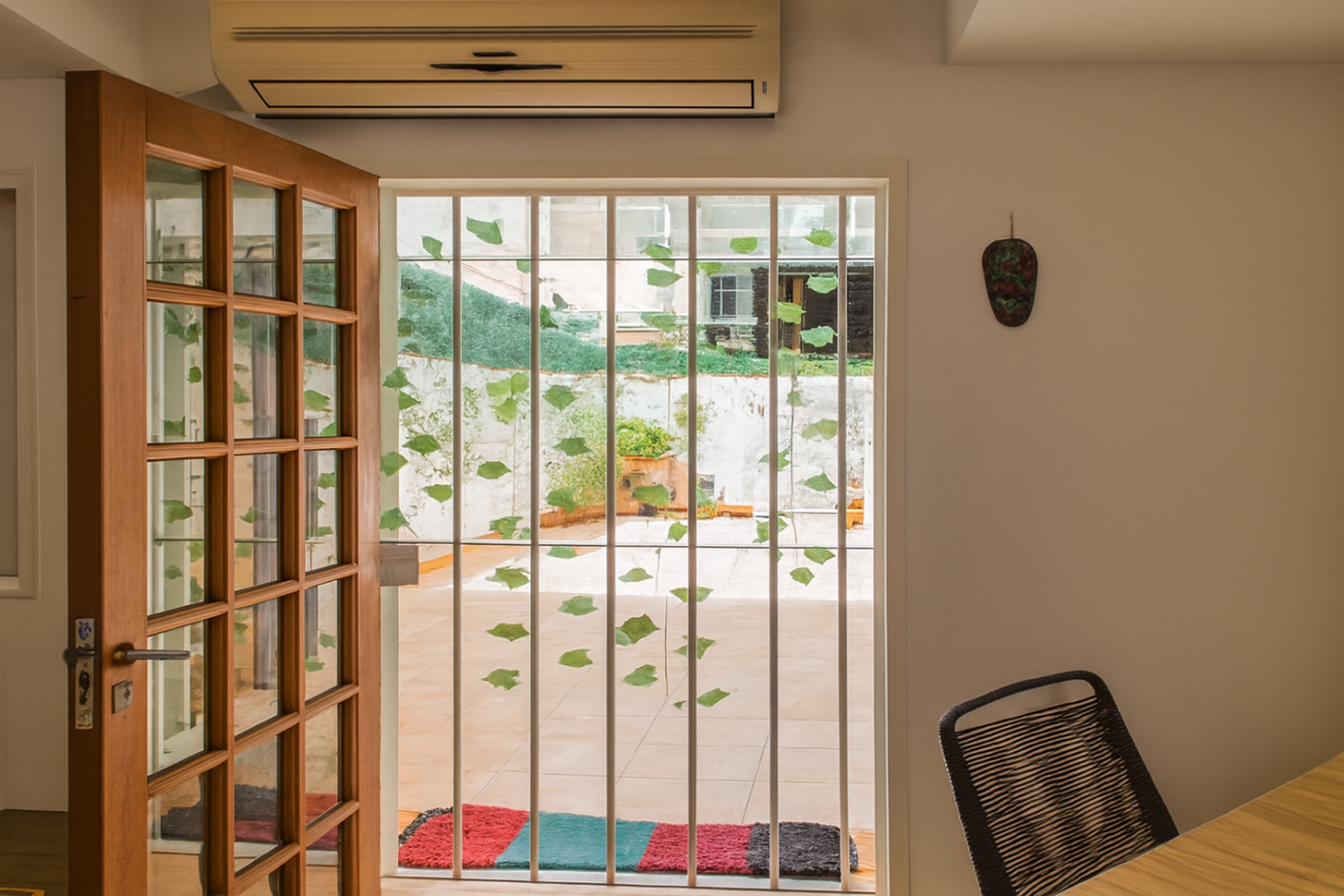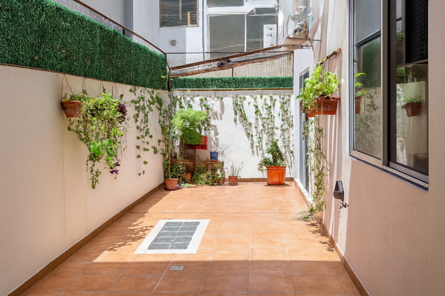 Patio: 2,28 x 7,58 mts, con redes de protección para mascotas.