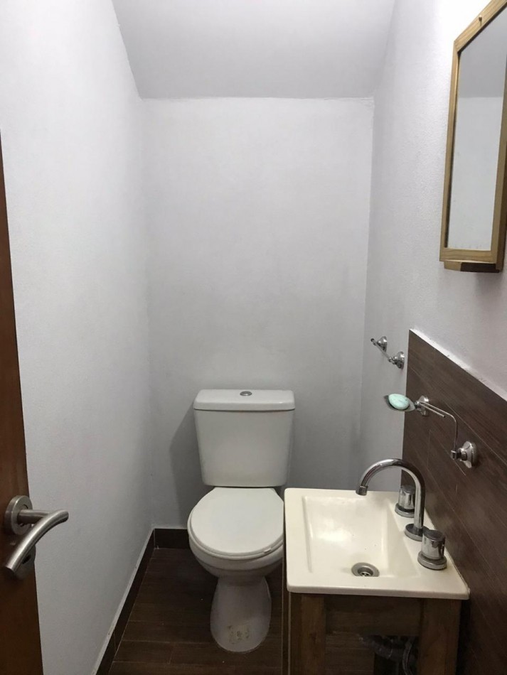 Duplex tres ambientes . Planta baja living comedor, toillet de recepcion, cocina y jardin.