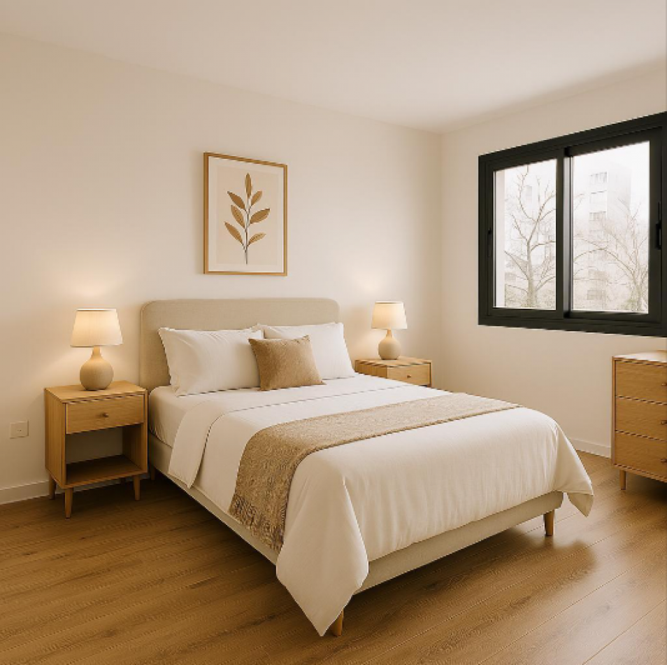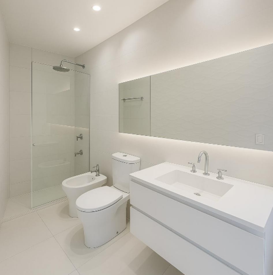 Detalles premium: pisos símil madera, aberturas de doble vidrio con marcos negros, griferías y sanitarios de primeras marcas.