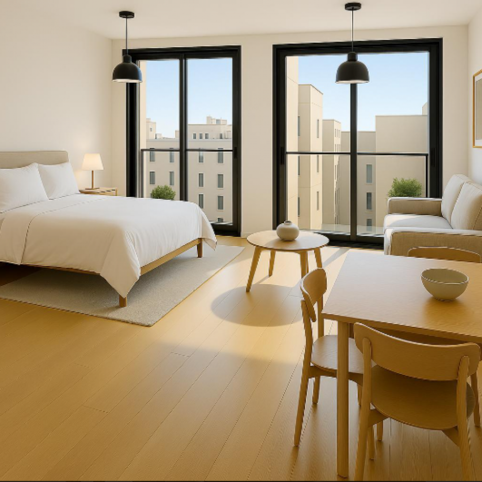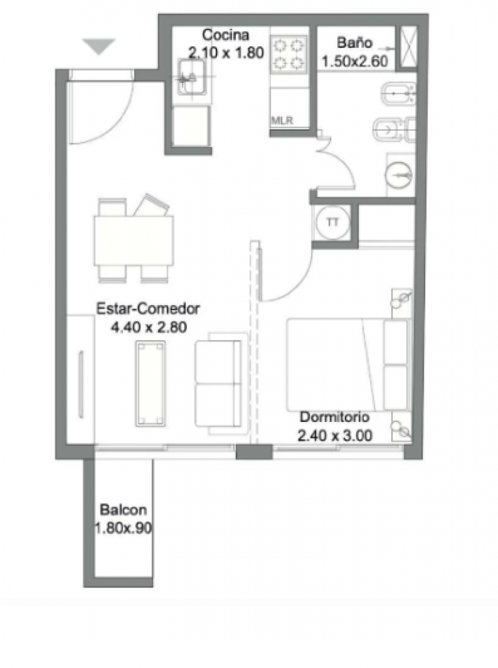 Planta flexible: posibilidad de dividir dormitorio y estar-comedor. Cocina separada y baño completo.