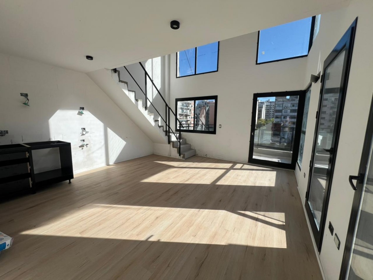 La unidad cuenta con hall de recepción, toilette de visitas, amplio ambiente con doble altura y salida directa a la terraza, cocina integrada y dormitorio en suite con baño completo.