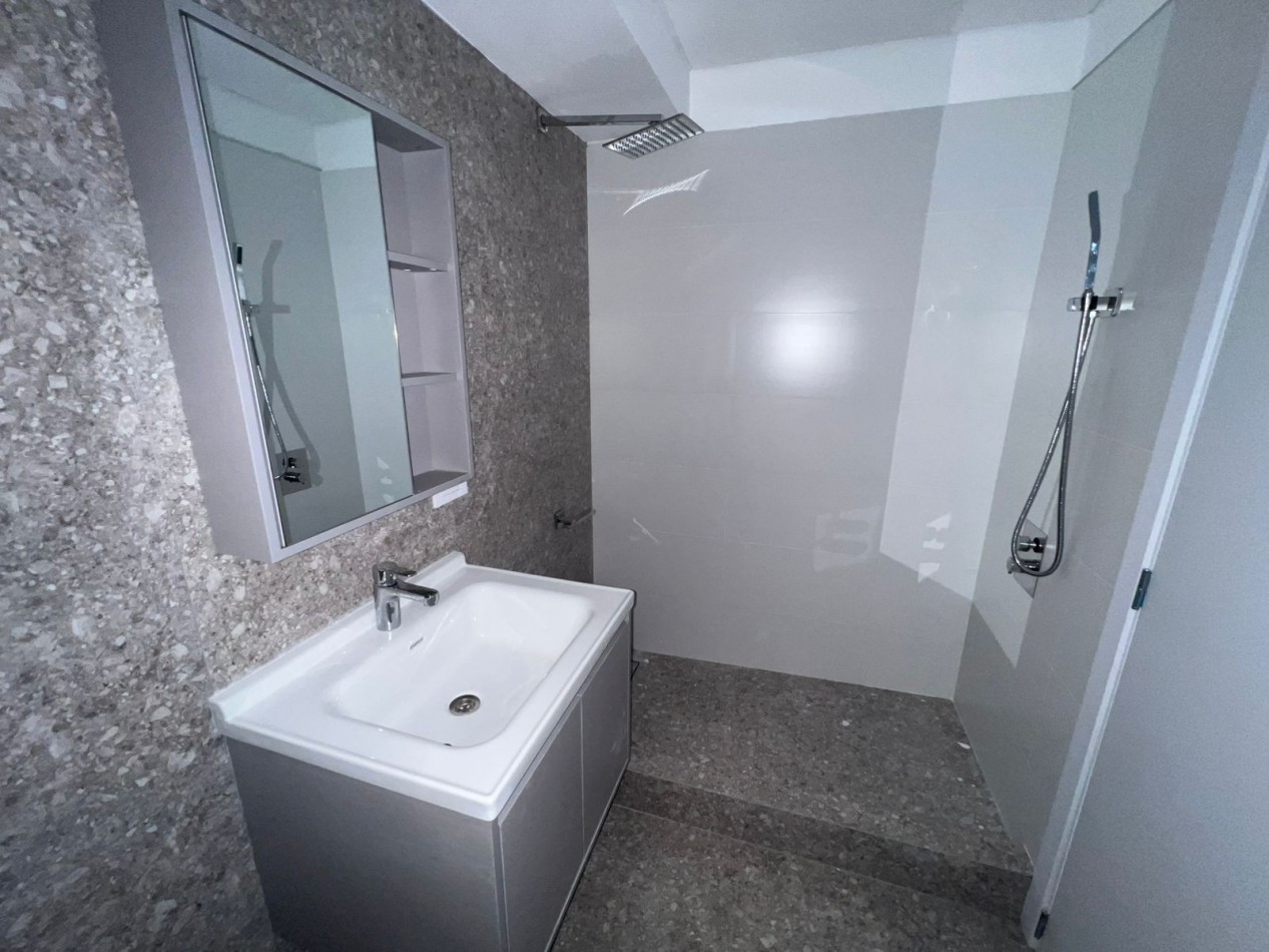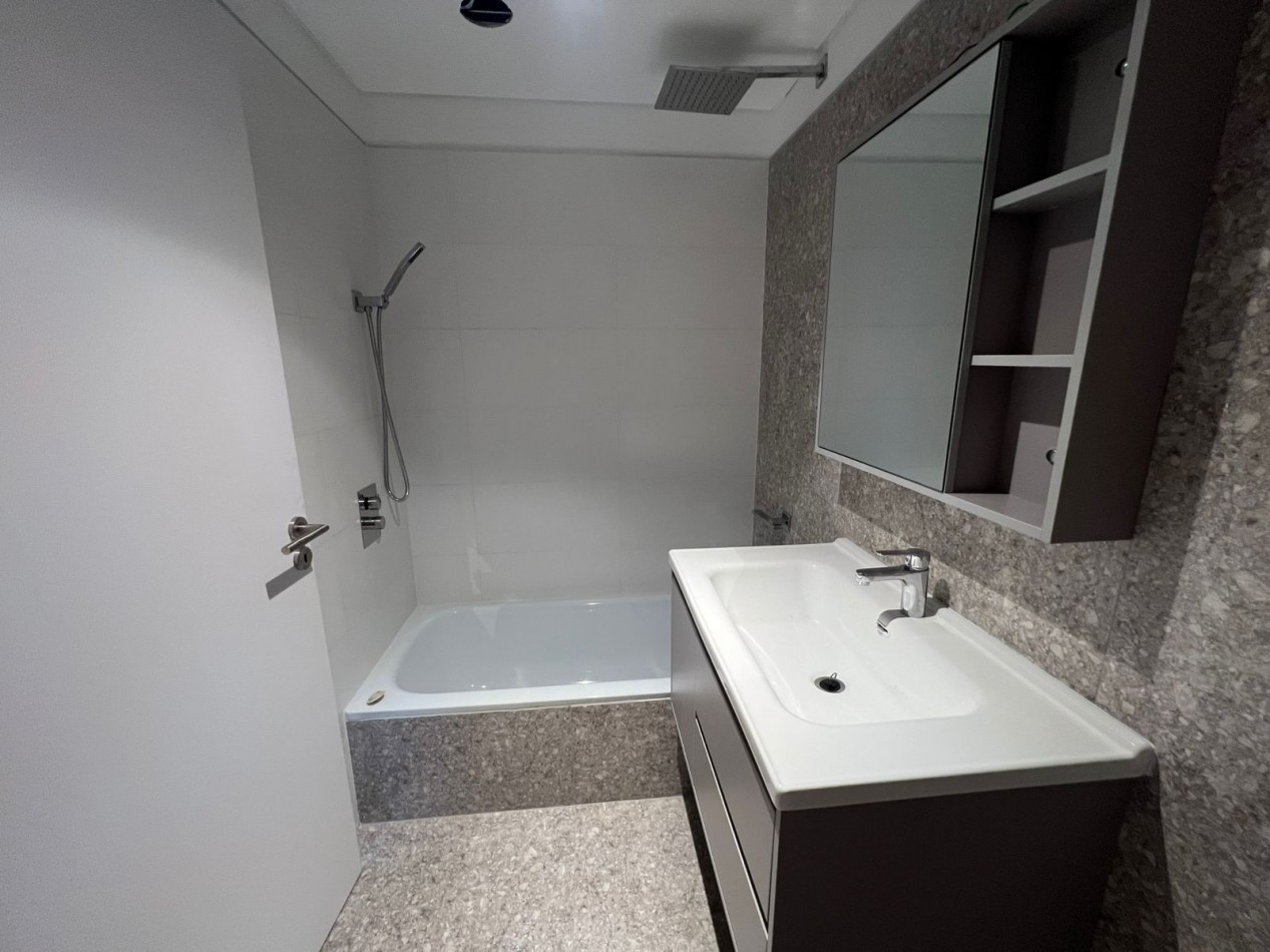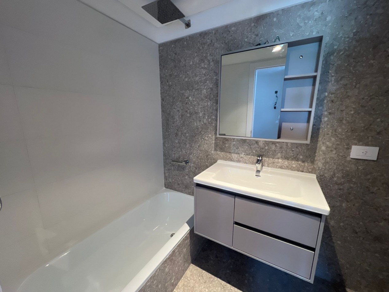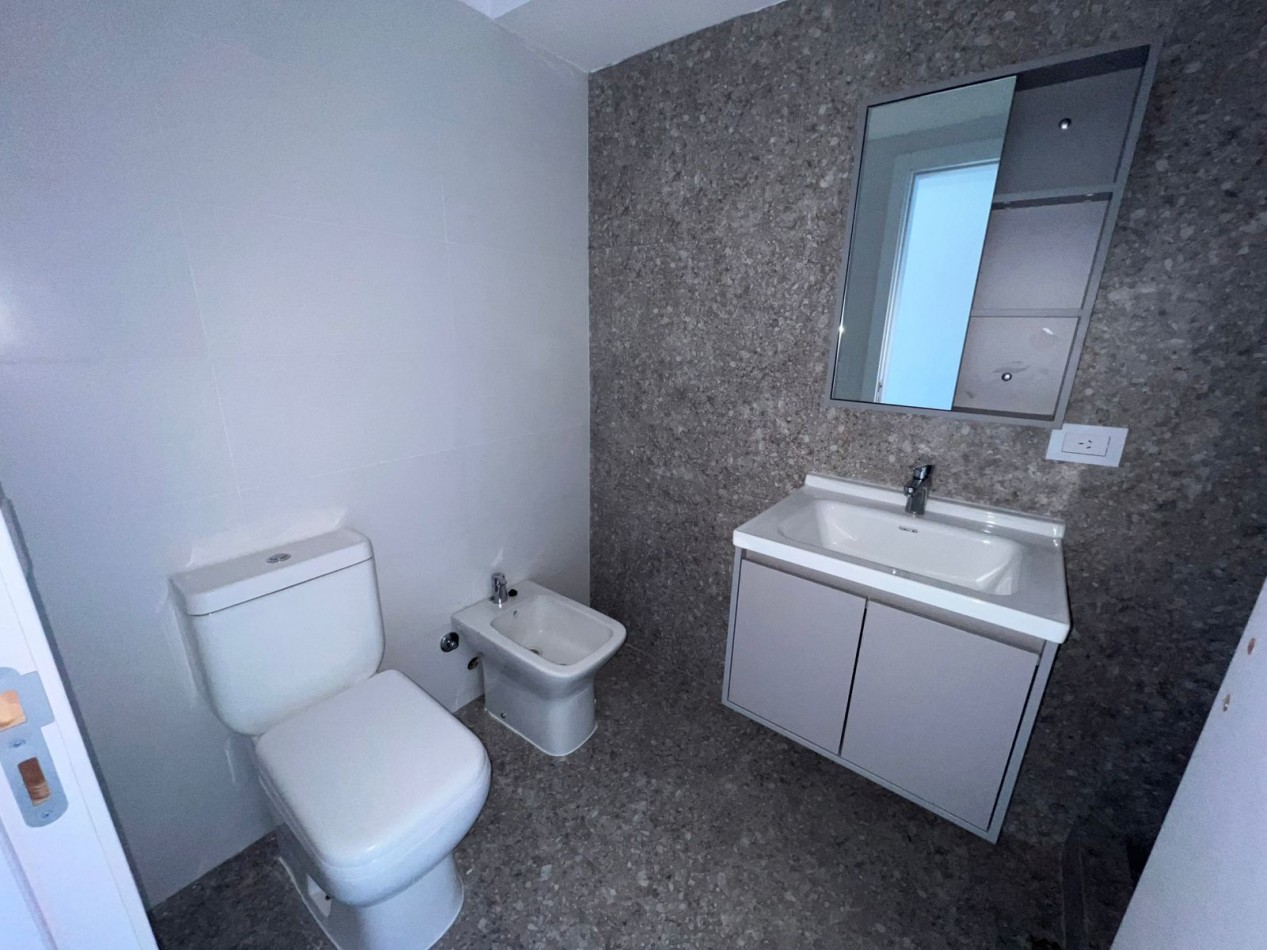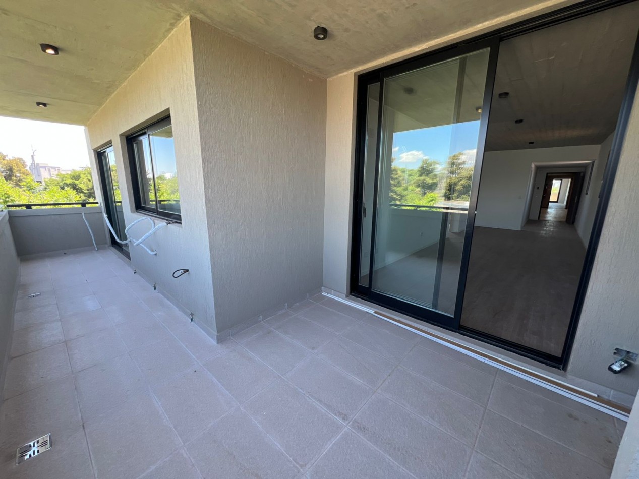 La unidad ofrece un diseño funcional y confortable: hall de recepción, cocina independiente de generosas dimensiones, living comedor con salida directa al balcón aterrazado, toilette de cortesía, baño completo y tres dormitorios, siendo el principal en suite con vestidor. Incluye cochera cubierta en subsuelo.
