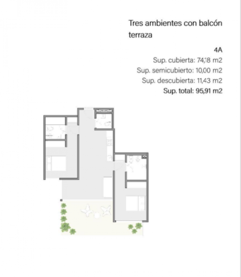Departamento de 3 ambientes | 74 m² cubiertos + balcón terraza de 20 m²