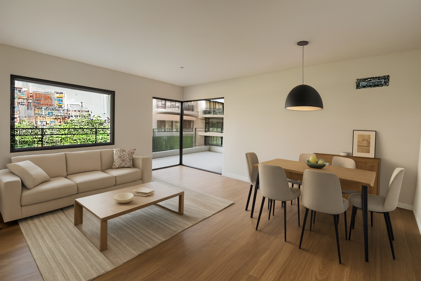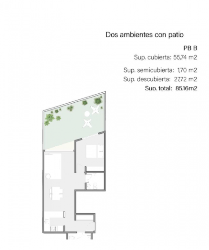 Unidad con hall de recepción, amplio living comedor con salida a balcón terraza, cocina integrada, baño completo y dos dormitorios (principal en suite).