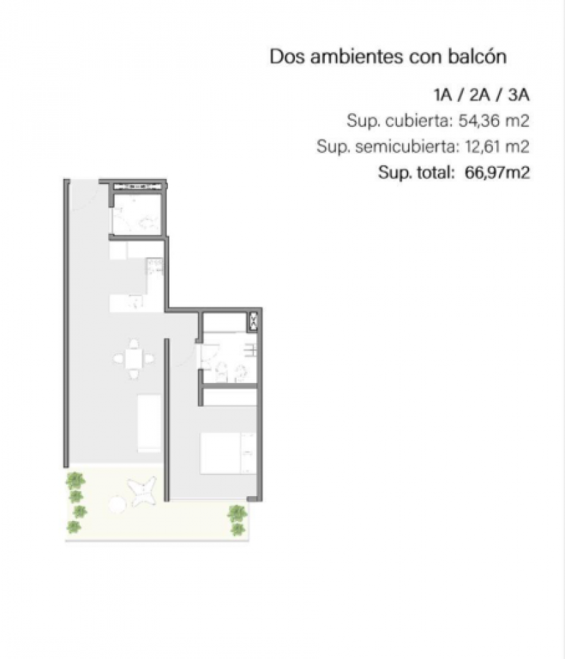 Único departamento de 2 ambientes | 66 m² cubiertos + terraza de 45 m²