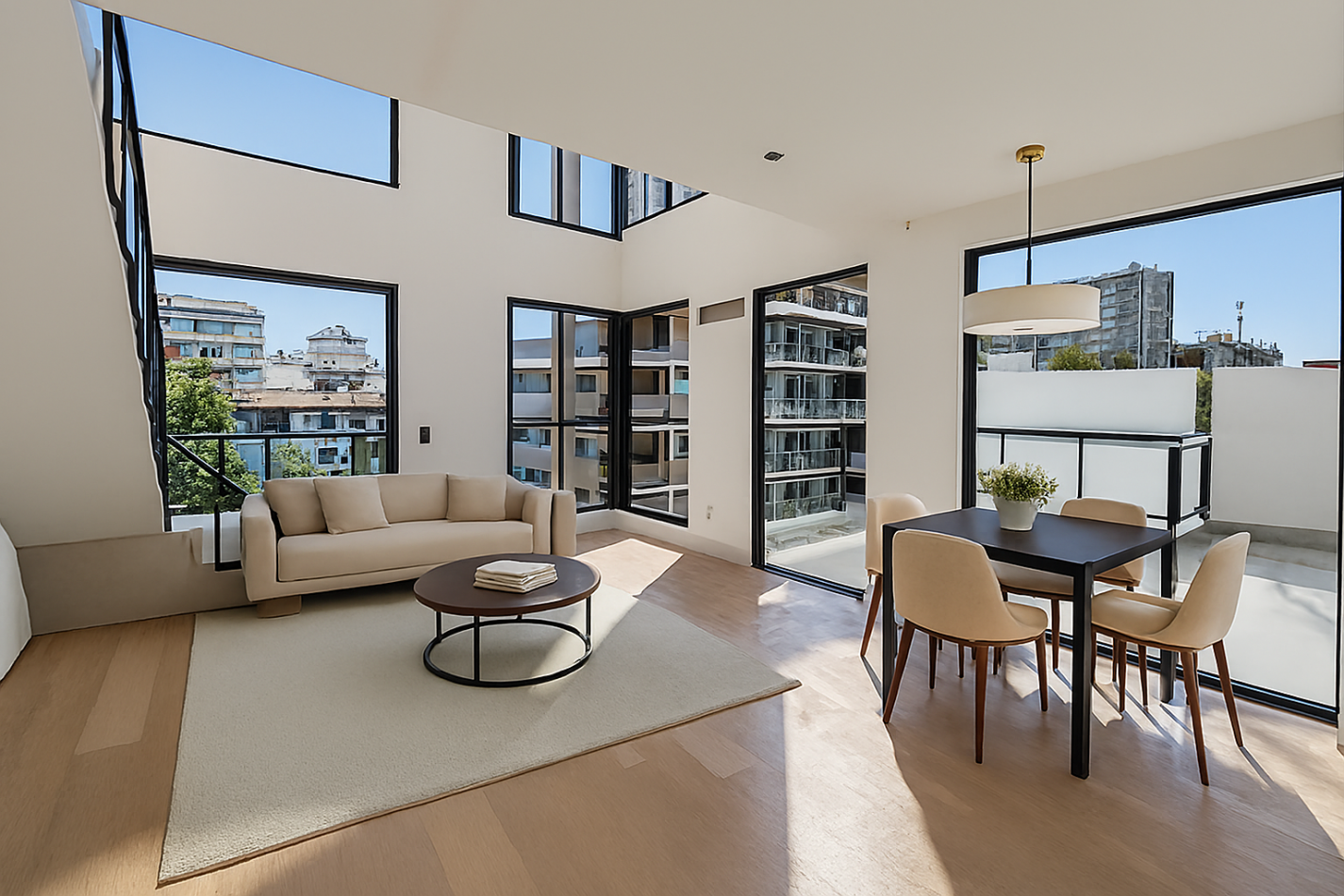 Unidad exclusiva! con hall de recepción, toillete de visitas, amplio ambiente con doble altura y salida a terraza propia, cocina integrada y dormitorio en suite con baño completo.