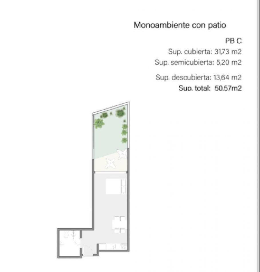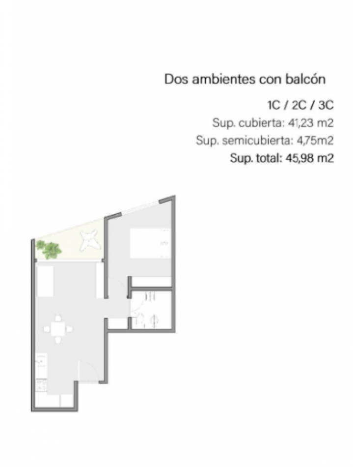 Monoambiente | 30 m² cubiertos + balcón terraza de 6 m²